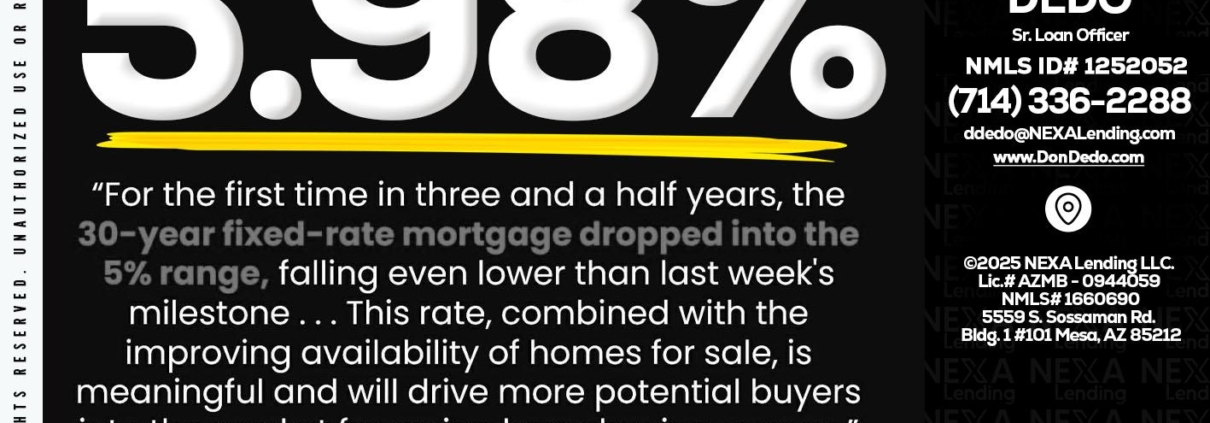 Hi, my name is Don Dedo. I’m a Loan Officer with NEXA Lending LLC., offering personalized mortgage solutions, fast customized quotes, great rates and service with integrity.