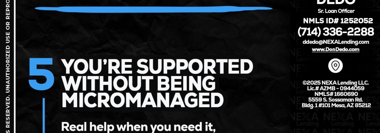 Hi, my name is Don Dedo. I’m a Loan Officer with NEXA Lending LLC., offering personalized mortgage solutions, fast customized quotes, great rates and service with integrity.