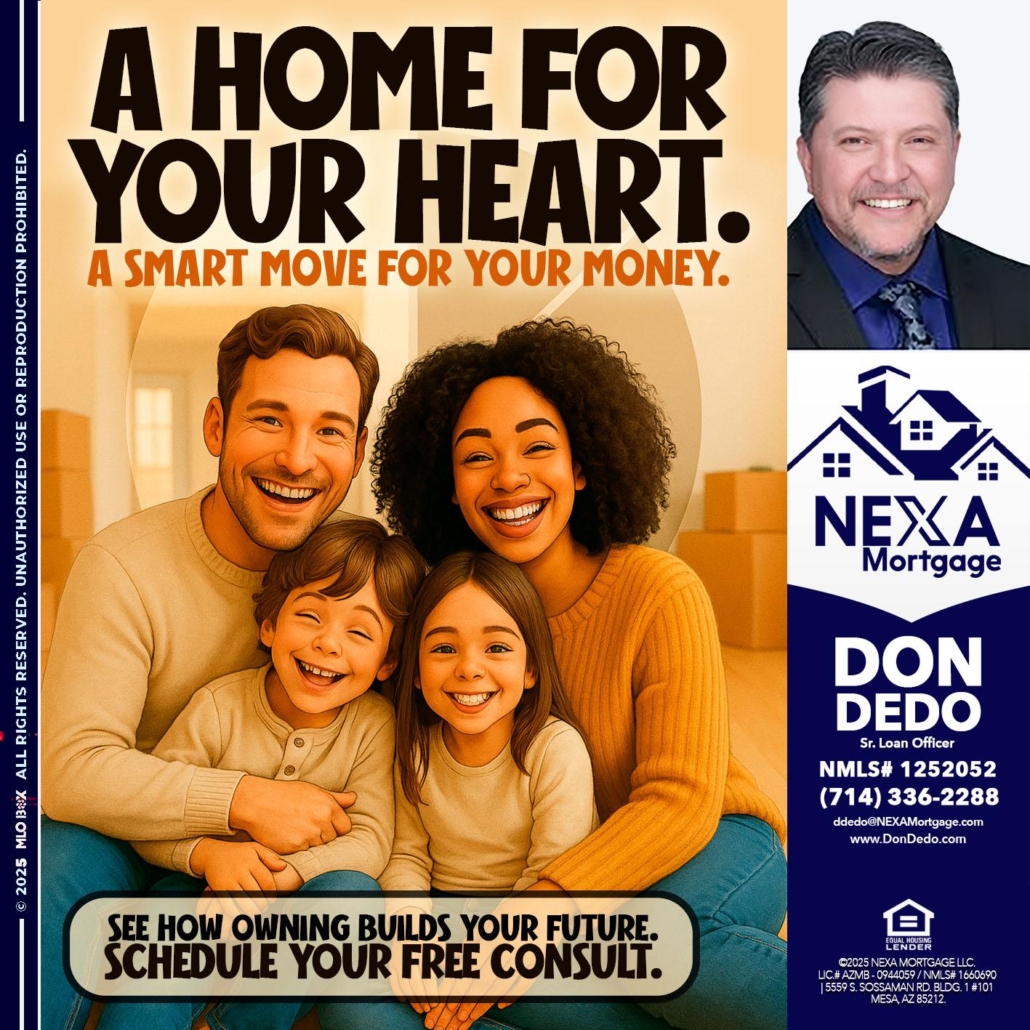 Hi, my name is Don Dedo. I’m a Loan Officer with NEXA Mortgage LLC., offering personalized mortgage solutions, fast customized quotes, great rates and service with integrity.