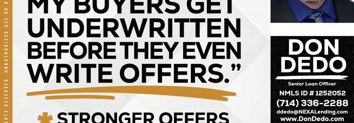 Hi, my name is Don Dedo. I’m a Loan Officer with NEXA Lending LLC., offering personalized mortgage solutions, fast customized quotes, great rates and service with integrity.
