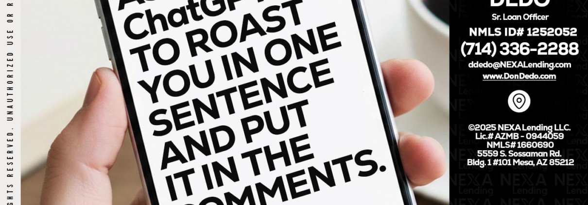 Hi, my name is Don Dedo. I’m a Loan Officer with NEXA Lending LLC., offering personalized mortgage solutions, fast customized quotes, great rates and service with integrity.