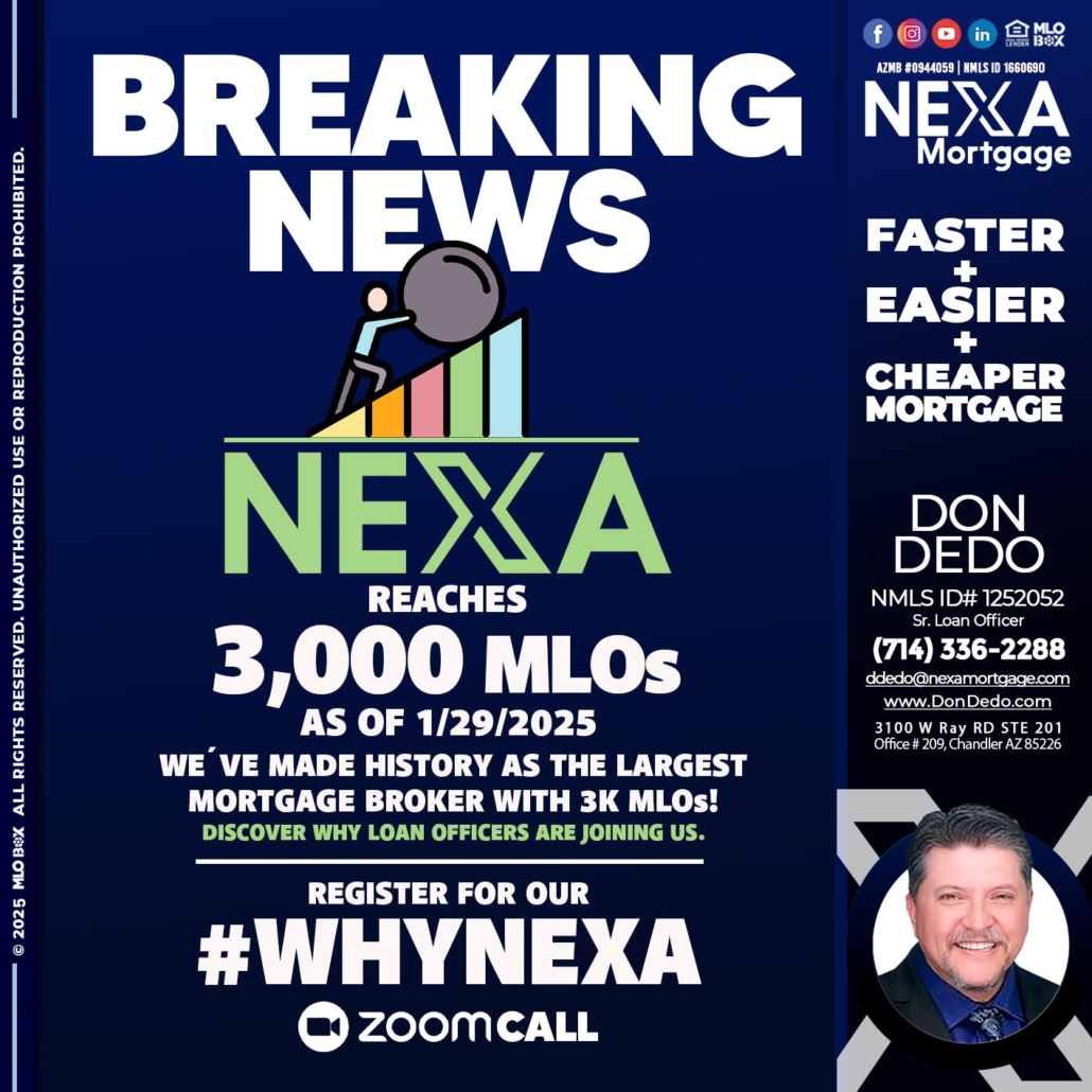 Hi, my name is Don Dedo. I’m a Loan Officer with NEXA Mortgage LLC., offering personalized mortgage solutions, fast customized quotes, great rates and service with integrity.