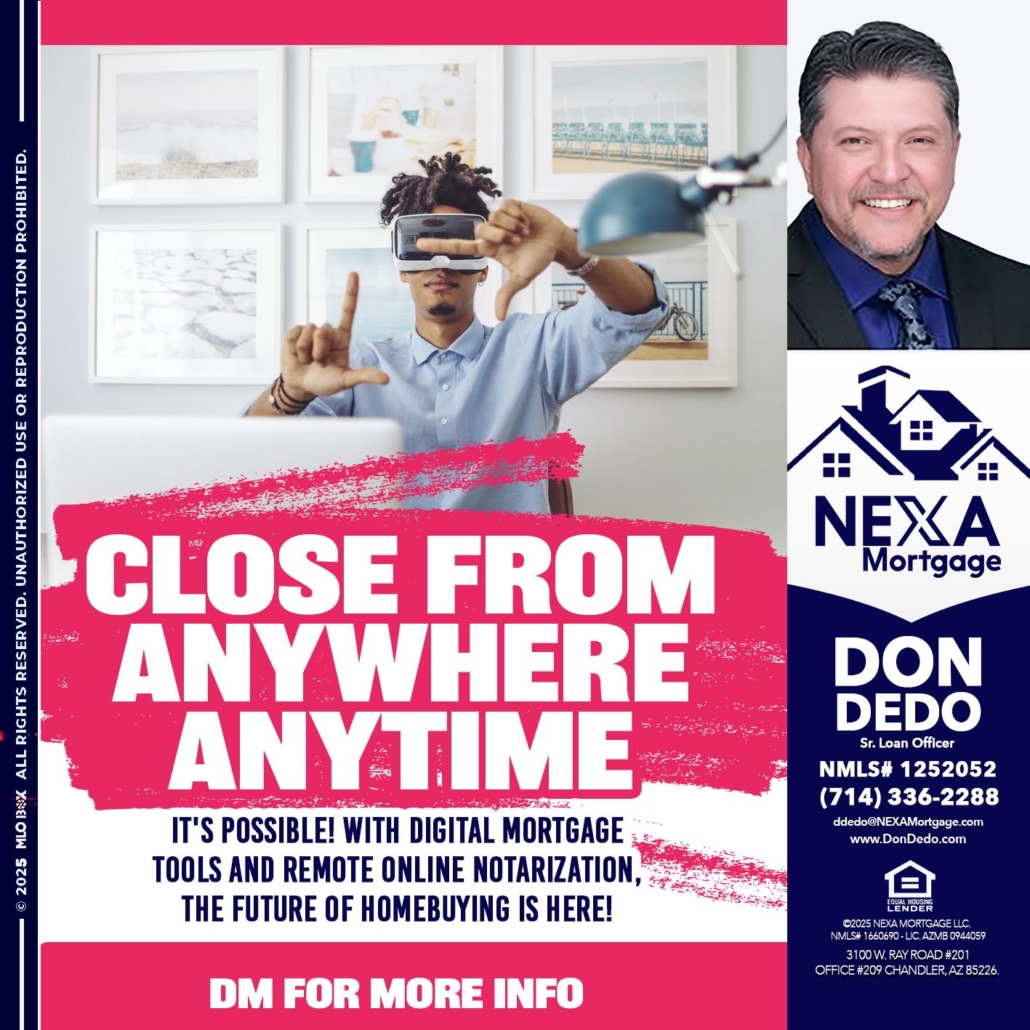 Hi, my name is Don Dedo. I’m a Loan Officer with NEXA Mortgage LLC., offering personalized mortgage solutions, fast customized quotes, great rates and service with integrity.