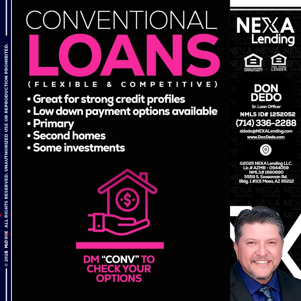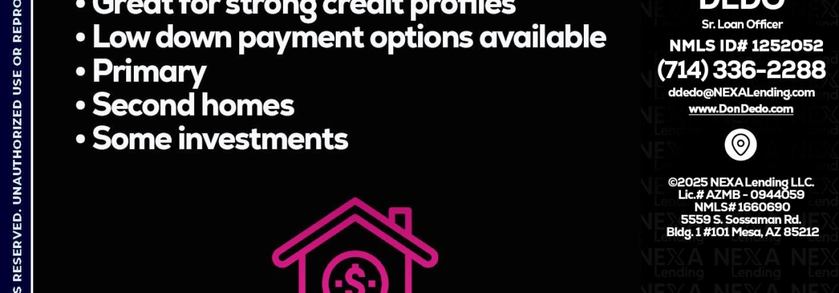 Hi, my name is Don Dedo. I’m a Loan Officer with NEXA Lending LLC., offering personalized mortgage solutions, fast customized quotes, great rates and service with integrity.