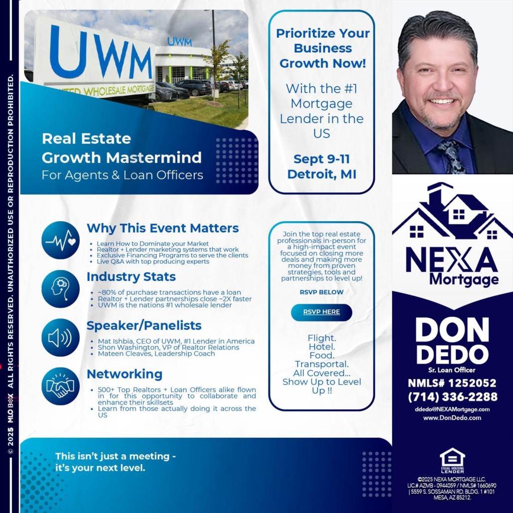 Hi, my name is Don Dedo. I’m a Loan Officer with NEXA Mortgage LLC., offering personalized mortgage solutions, fast customized quotes, great rates and service with integrity.