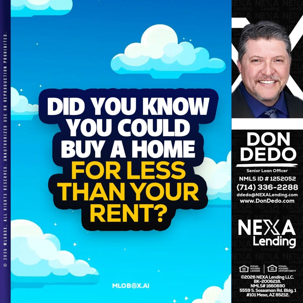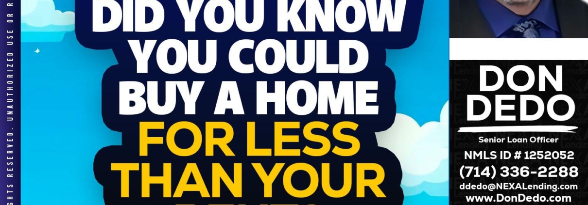 Hi, my name is Don Dedo. I’m a Loan Officer with NEXA Lending LLC., offering personalized mortgage solutions, fast customized quotes, great rates and service with integrity.