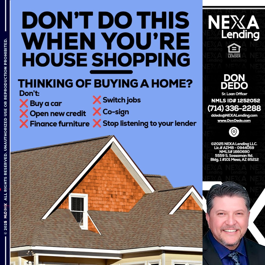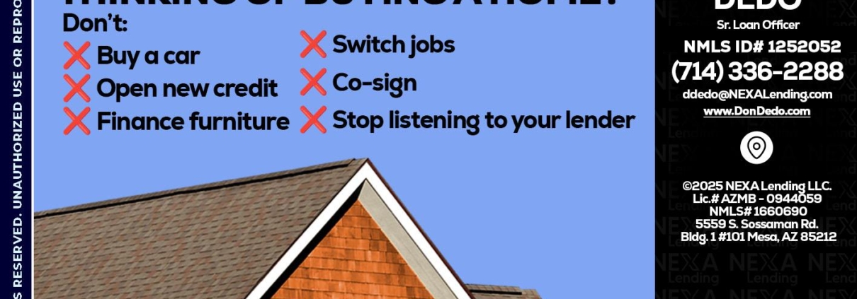 Hi, my name is Don Dedo. I’m a Loan Officer with NEXA Lending LLC., offering personalized mortgage solutions, fast customized quotes, great rates and service with integrity.
