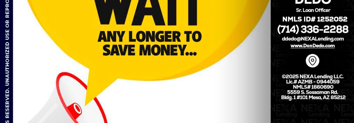 DONT WAIT - Don Dedo -Mortgage Loan OriginatorHi, my name is Don Dedo. I’m a Loan Officer with NEXA Mortgage LLC., offering personalized mortgage solutions, fast customized quotes, great rates and service with integrity.