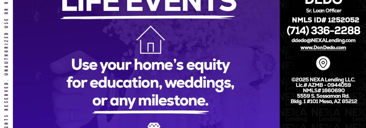 Hi, my name is Don Dedo. I’m a Loan Officer with NEXA Lending LLC., offering personalized mortgage solutions, fast customized quotes, great rates and service with integrity.