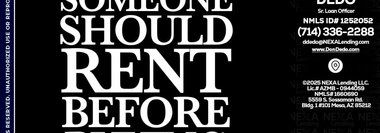Hi, my name is Don Dedo. I’m a Loan Officer with NEXA Mortgage LLC., offering personalized mortgage solutions, fast customized quotes, great rates and service with integrity.