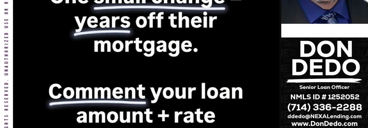 I JUST RAN - Don Dedo -Mortgage Loan OriginatorHi, my name is Don Dedo. I’m a Loan Officer with NEXA Lending LLC., offering personalized mortgage solutions, fast customized quotes, great rates and service with integrity.