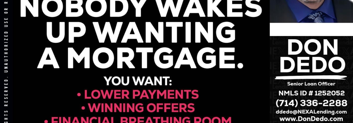 Hi, my name is Don Dedo. I’m a Loan Officer with NEXA Lending LLC., offering personalized mortgage solutions, fast customized quotes, great rates and service with integrity.