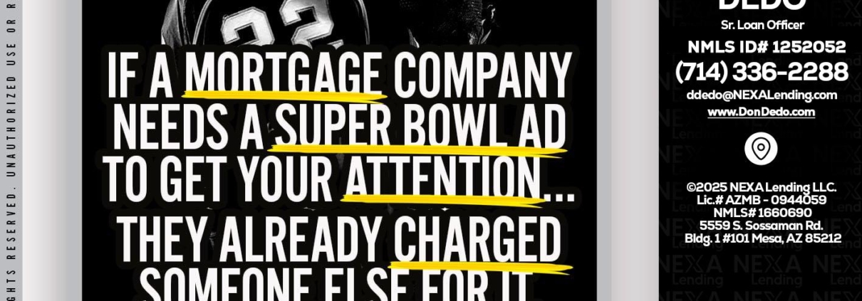 Hi, my name is Don Dedo. I’m a Loan Officer with NEXA Lending LLC., offering personalized mortgage solutions, fast customized quotes, great rates and service with integrity.