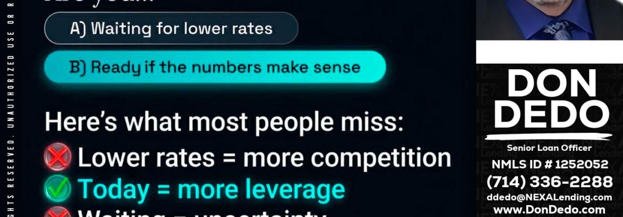 IF YOU ARE - Don Dedo -Mortgage Loan OriginatorHi, my name is Don Dedo. I’m a Loan Officer with NEXA Lending LLC., offering personalized mortgage solutions, fast customized quotes, great rates and service with integrity.