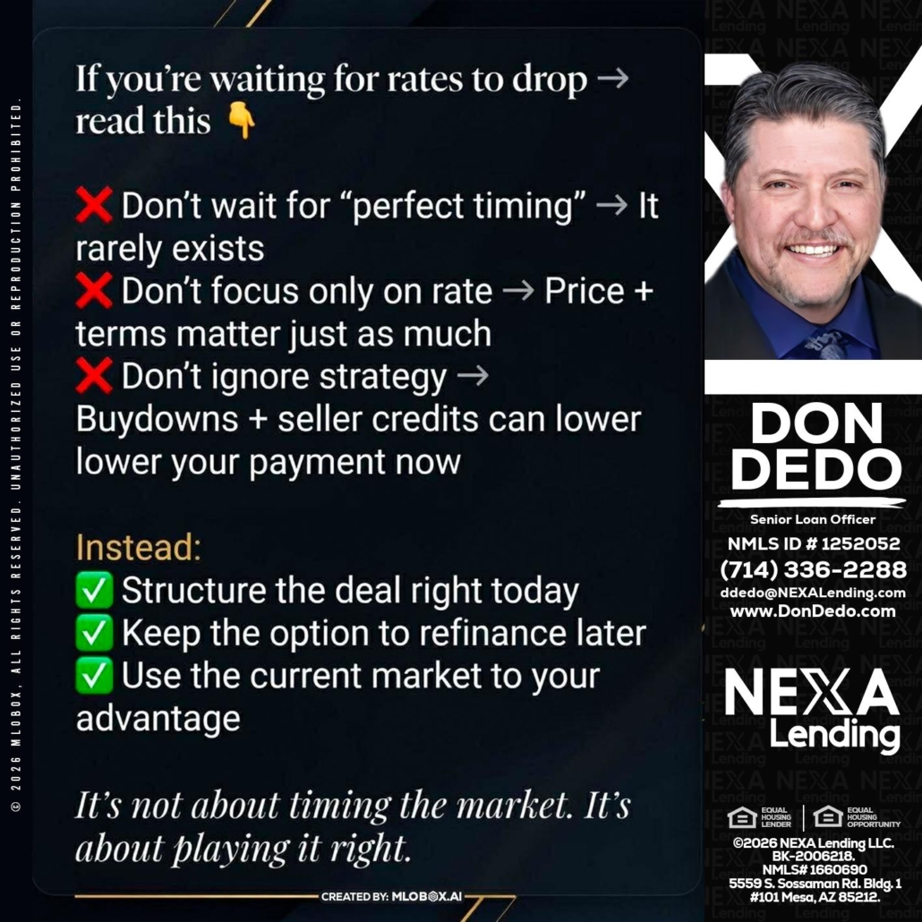 IF YOU ARE - Don Dedo -Mortgage Loan OriginatorHi, my name is Don Dedo. I’m a Loan Officer with NEXA Lending LLC., offering personalized mortgage solutions, fast customized quotes, great rates and service with integrity.
