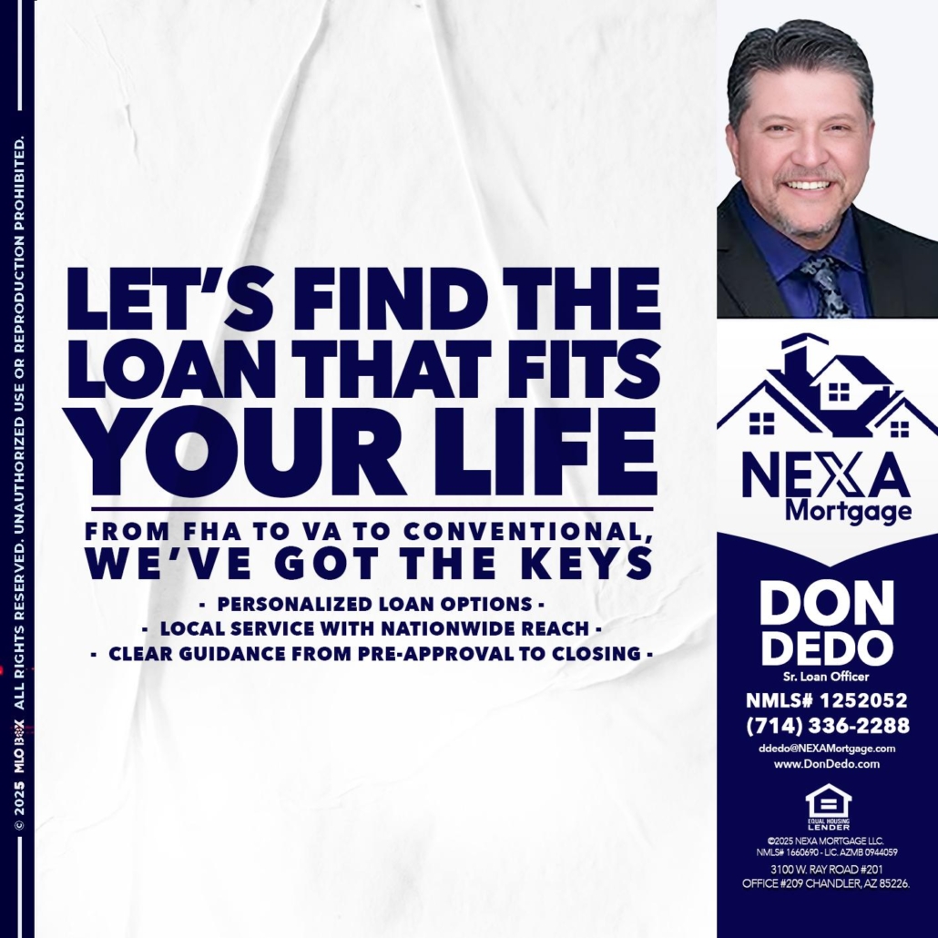 Hi, my name is Don Dedo. I’m a Loan Officer with NEXA Mortgage LLC., offering personalized mortgage solutions, fast customized quotes, great rates and service with integrity.