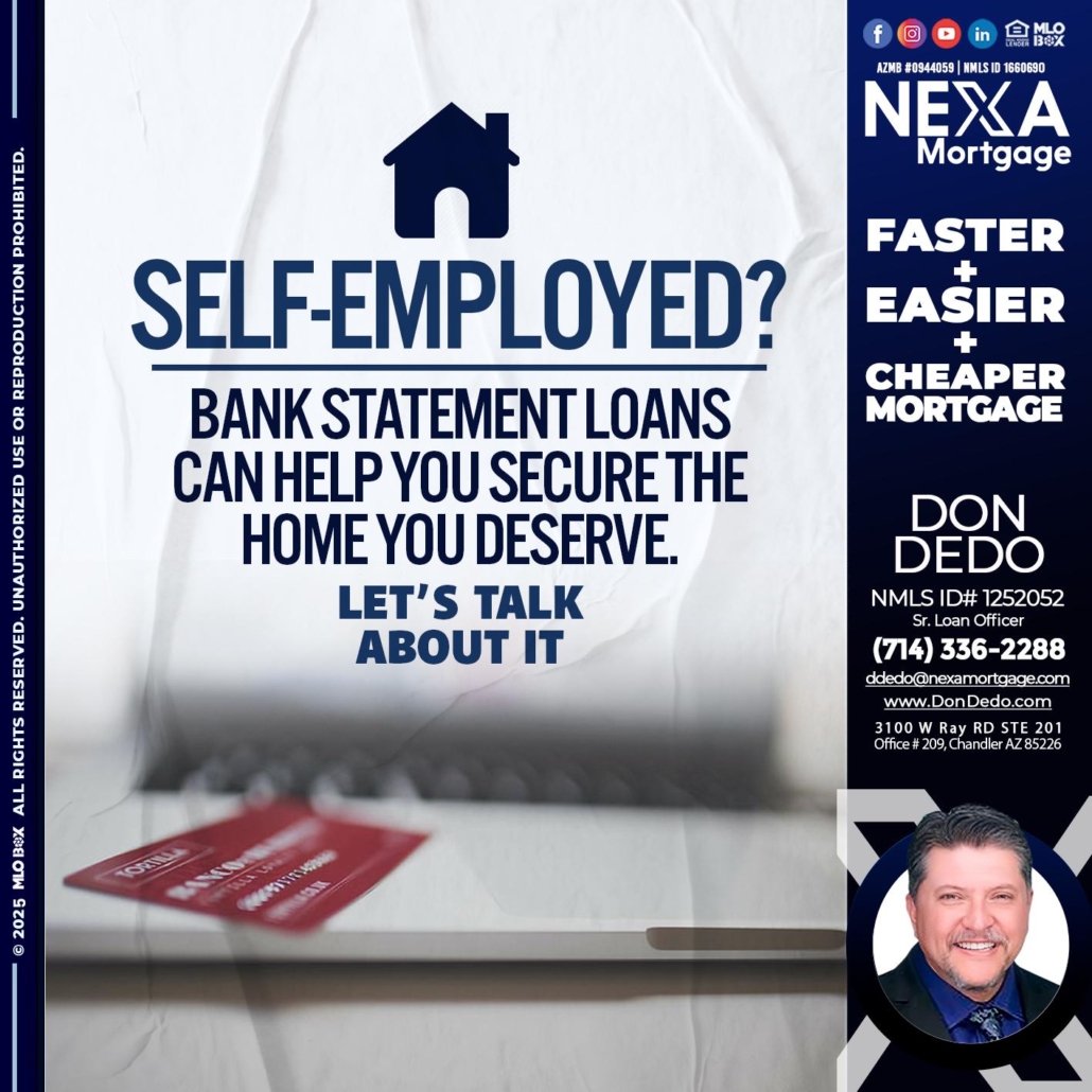 Hi, my name is Don Dedo. I’m a Loan Officer with NEXA Mortgage LLC., offering personalized mortgage solutions, fast customized quotes, great rates and service with integrity.