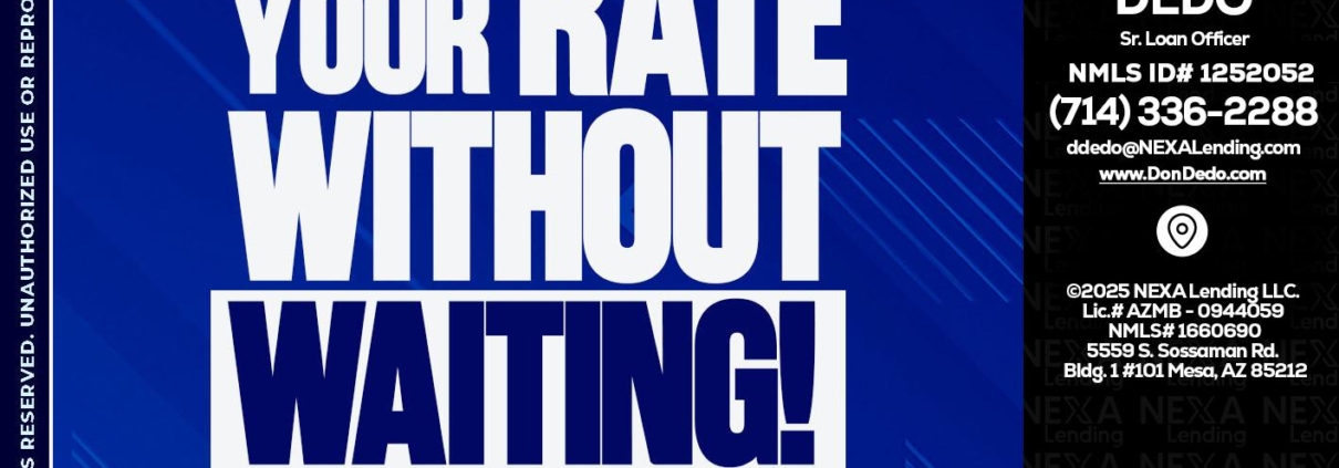 Hi, my name is Don Dedo. I’m a Loan Officer with NEXA Mortgage LLC., offering personalized mortgage solutions, fast customized quotes, great rates and service with integrity.