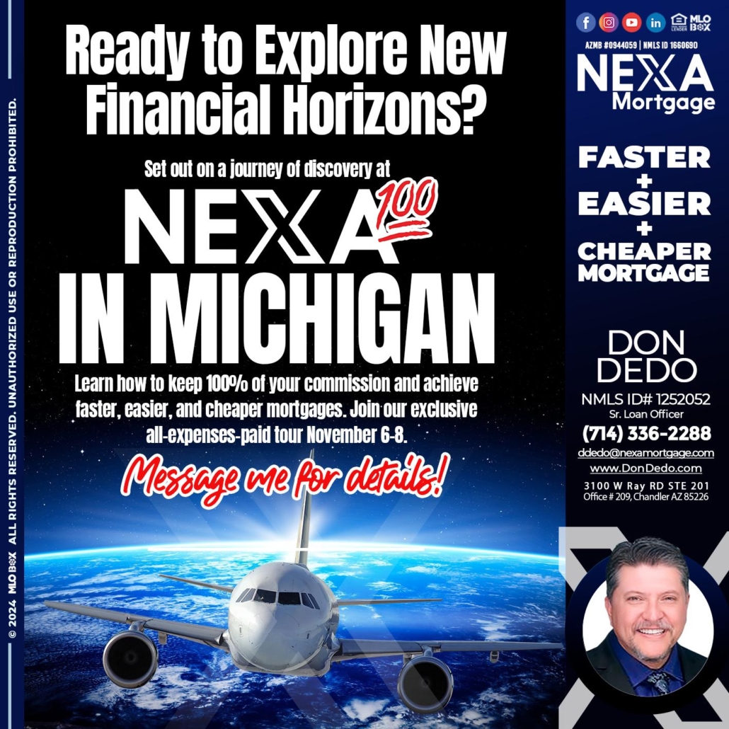 Hi, my name is Don Dedo. I’m a Loan Officer with NEXA Mortgage LLC., offering personalized mortgage solutions, fast customized quotes, great rates and service with integrity.