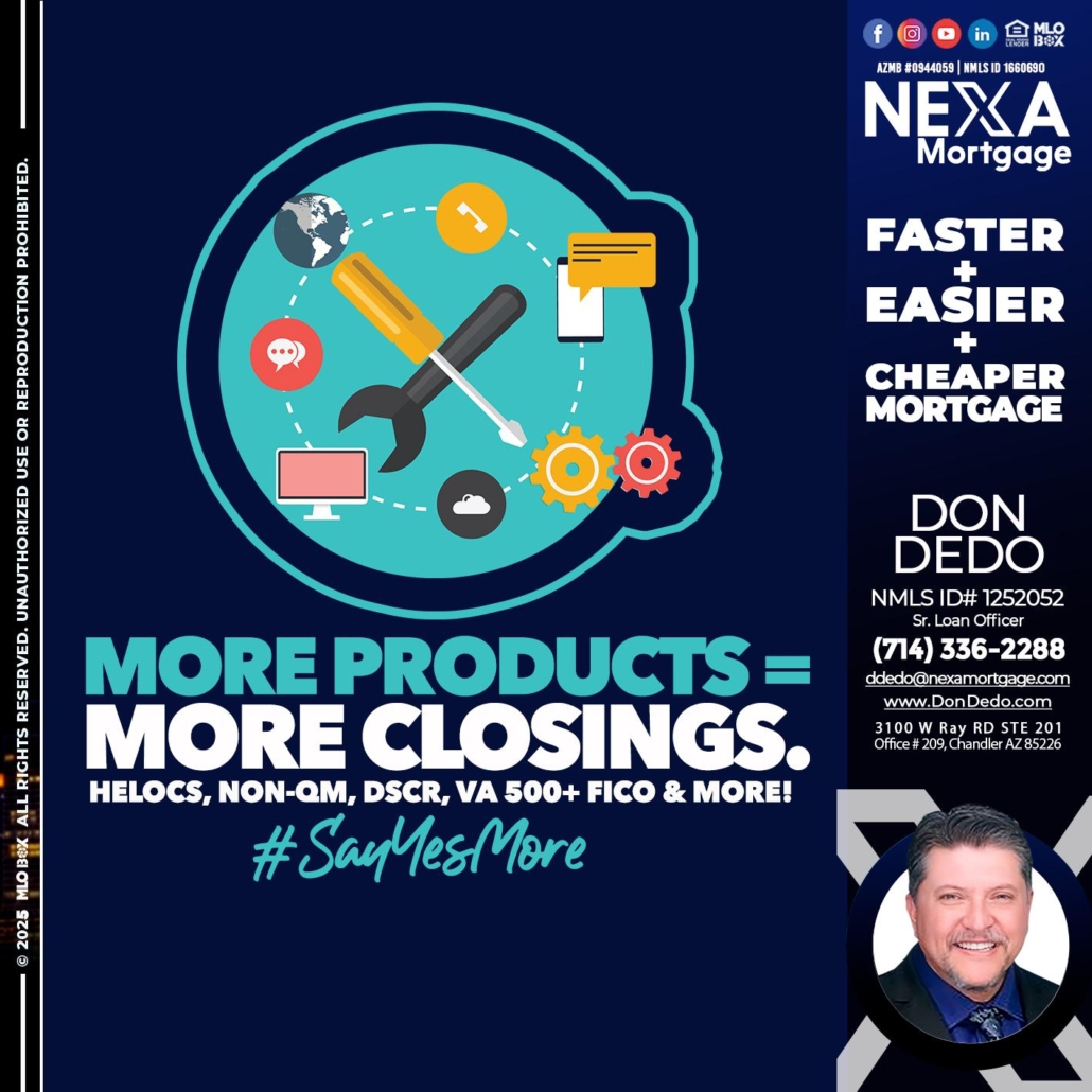 Hi, my name is Don Dedo. I’m a Loan Officer with NEXA Mortgage LLC., offering personalized mortgage solutions, fast customized quotes, great rates and service with integrity.