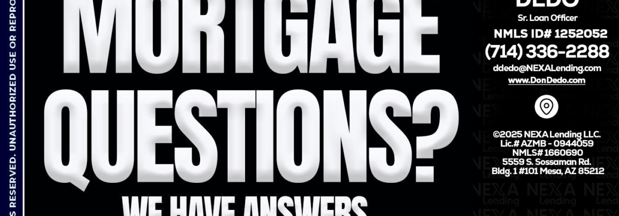 mortgage questions - Don Dedo -Mortgage Loan OriginatorHi, my name is Don Dedo. I’m a Loan Officer with NEXA Mortgage LLC., offering personalized mortgage solutions, fast customized quotes, great rates and service with integrity.