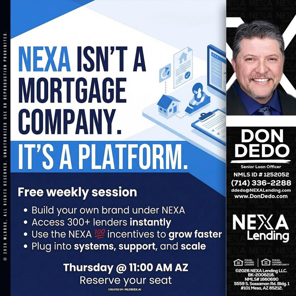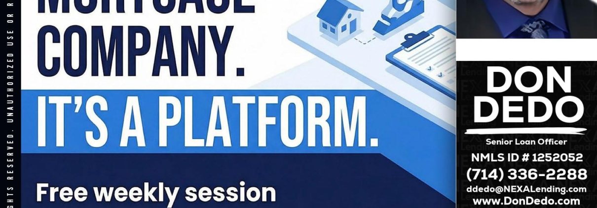 Hi, my name is Don Dedo. I’m a Loan Officer with NEXA Lending LLC., offering personalized mortgage solutions, fast customized quotes, great rates and service with integrity.