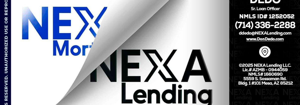 NEXA LENDING - Don Dedo -Mortgage Loan OriginatorHi, my name is Don Dedo. I’m a Loan Officer with NEXA Mortgage LLC., offering personalized mortgage solutions, fast customized quotes, great rates and service with integrity.