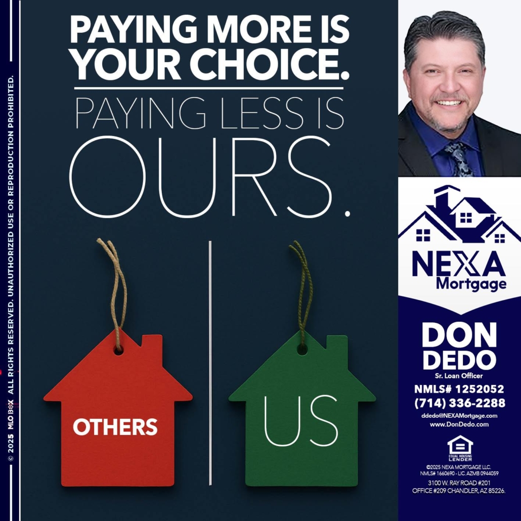 Hi, my name is Don Dedo. I’m a Loan Officer with NEXA Mortgage LLC., offering personalized mortgage solutions, fast customized quotes, great rates and service with integrity.