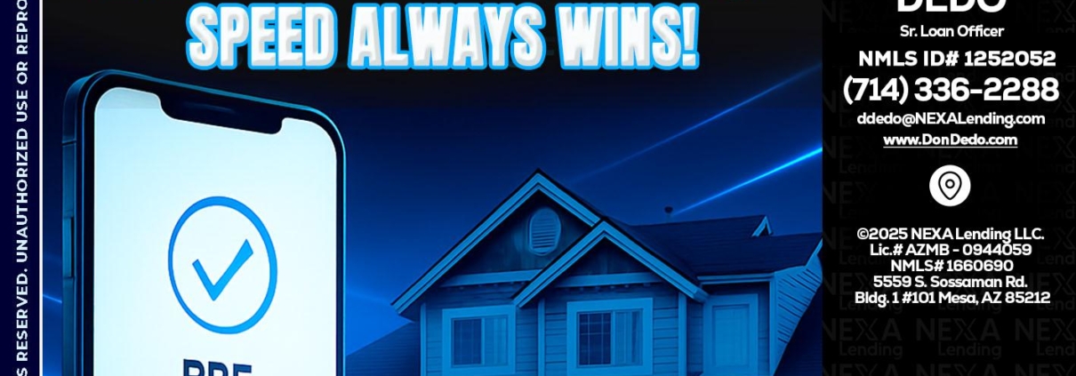 Hi, my name is Don Dedo. I’m a Loan Officer with NEXA Mortgage LLC., offering personalized mortgage solutions, fast customized quotes, great rates and service with integrity.
