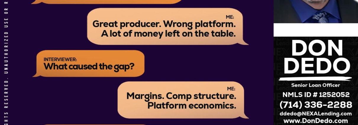 Hi, my name is Don Dedo. I’m a Loan Officer with NEXA Lending LLC., offering personalized mortgage solutions, fast customized quotes, great rates and service with integrity.