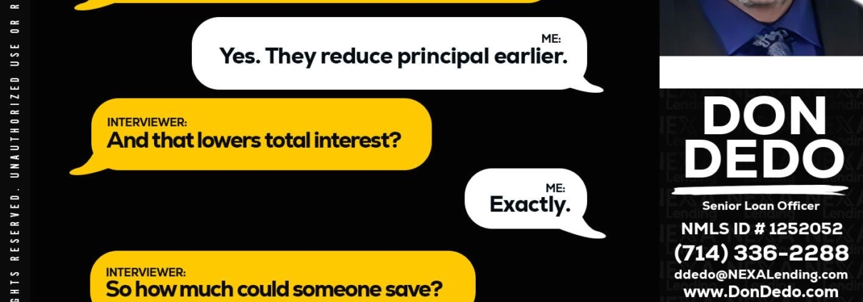 Hi, my name is Don Dedo. I’m a Loan Officer with NEXA Lending LLC., offering personalized mortgage solutions, fast customized quotes, great rates and service with integrity.