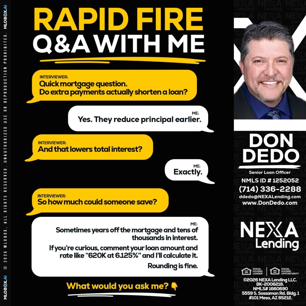 Hi, my name is Don Dedo. I’m a Loan Officer with NEXA Lending LLC., offering personalized mortgage solutions, fast customized quotes, great rates and service with integrity.