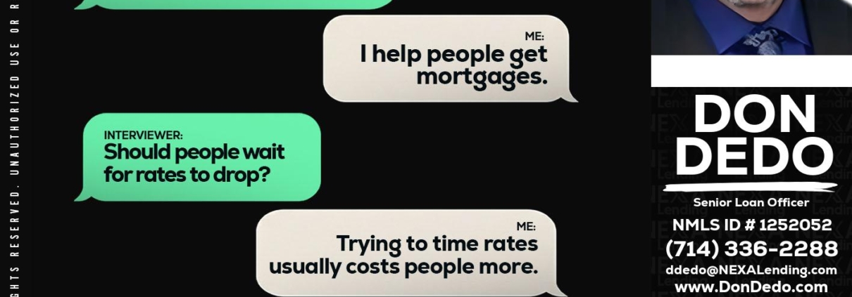 RAPID FIRE Q&A - Don Dedo -Mortgage Loan OriginatorHi, my name is Don Dedo. I’m a Loan Officer with NEXA Lending LLC., offering personalized mortgage solutions, fast customized quotes, great rates and service with integrity.