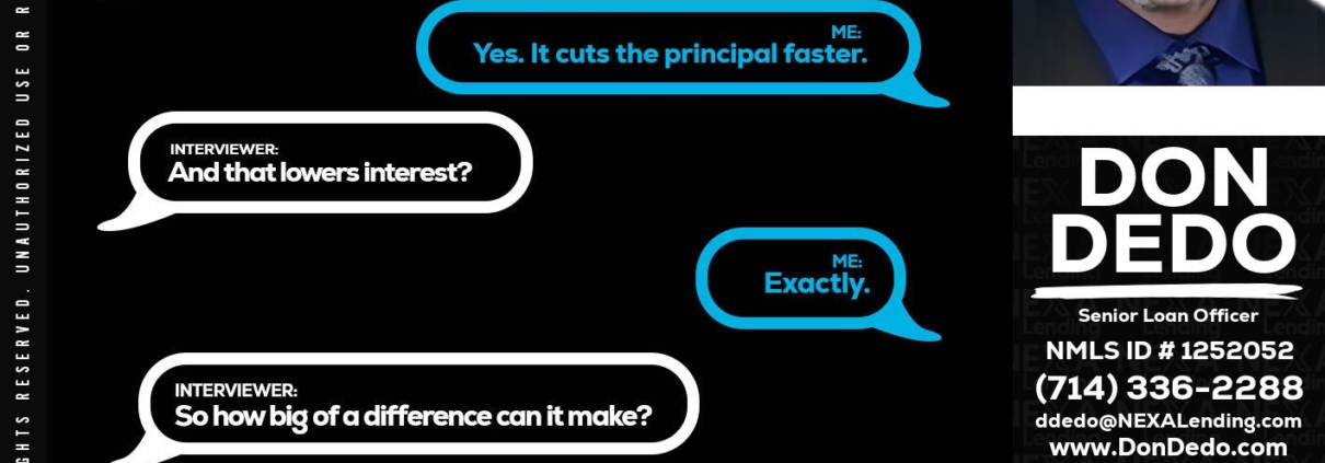 Hi, my name is Don Dedo. I’m a Loan Officer with NEXA Lending LLC., offering personalized mortgage solutions, fast customized quotes, great rates and service with integrity.