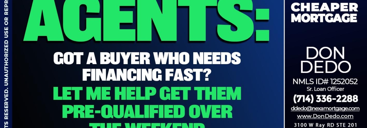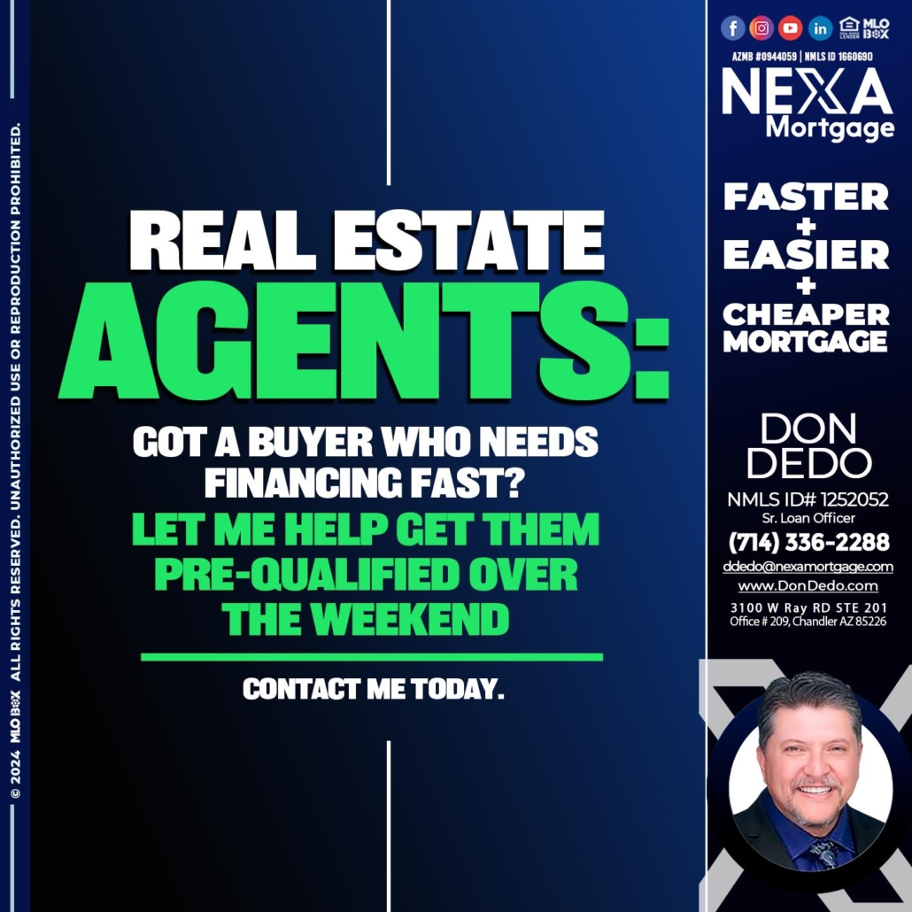 Hi, my name is Don Dedo. I’m a Loan Officer with NEXA Mortgage LLC., offering personalized mortgage solutions, fast customized quotes, great rates and service with integrity.