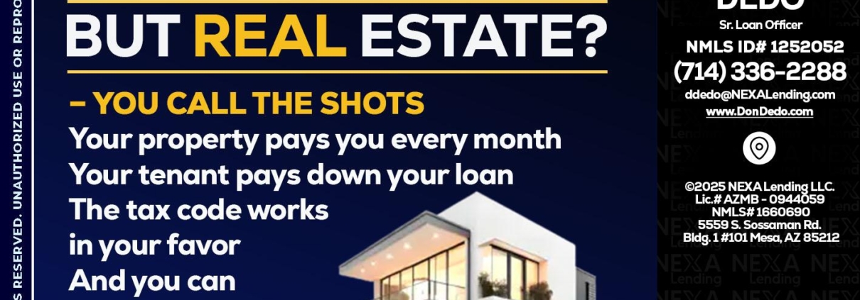 Hi, my name is Don Dedo. I’m a Loan Officer with NEXA Mortgage LLC., offering personalized mortgage solutions, fast customized quotes, great rates and service with integrity.