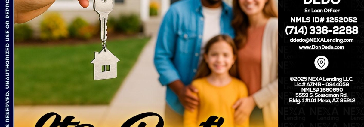 Hi, my name is Don Dedo. I’m a Loan Officer with NEXA Mortgage LLC., offering personalized mortgage solutions, fast customized quotes, great rates and service with integrity.