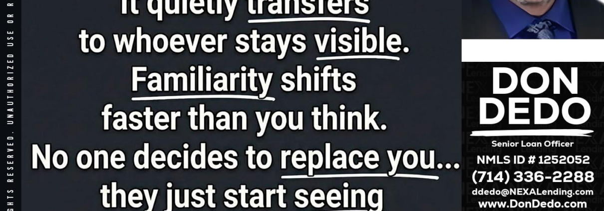 Hi, my name is Don Dedo. I’m a Loan Officer with NEXA Lending LLC., offering personalized mortgage solutions, fast customized quotes, great rates and service with integrity.
