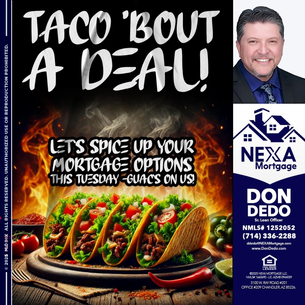 TACO TUESDAY As brokers, we shop your scenario with 30+ lenders to get you the best rate.