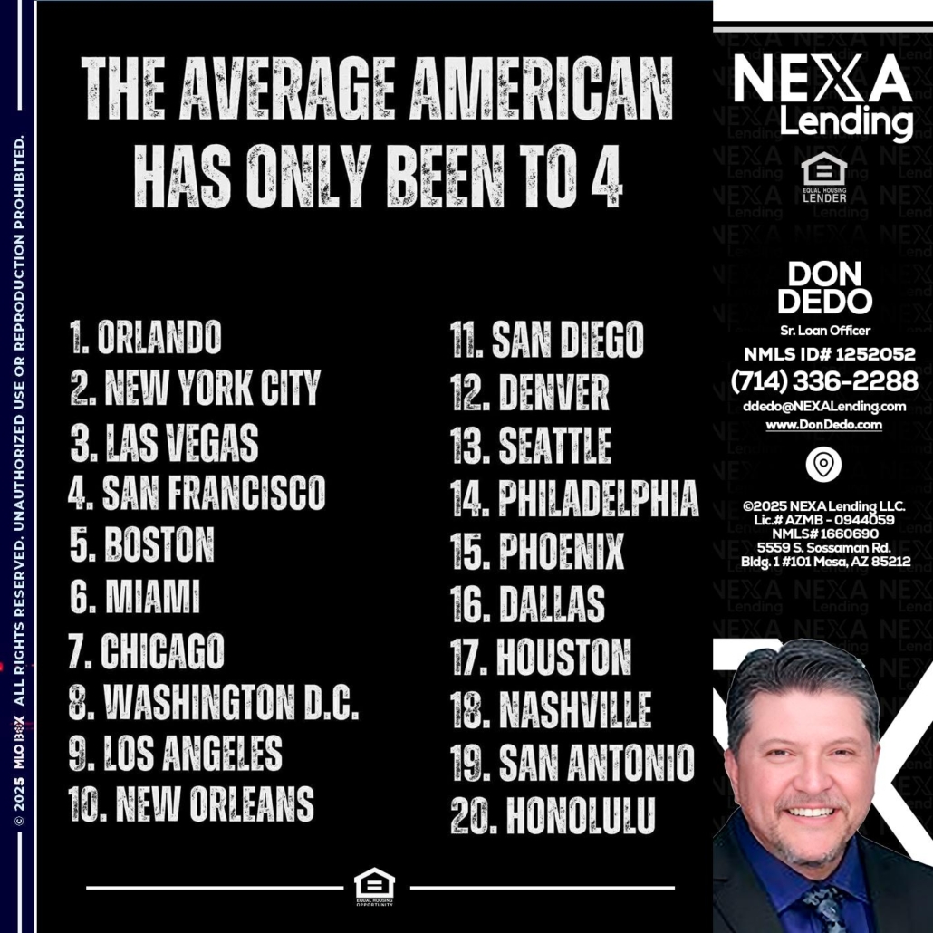THE AVERAGE AMERICAN - Don Dedo -Mortgage Loan OriginatorHi, my name is Don Dedo. I’m a Loan Officer with NEXA Lending LLC., offering personalized mortgage solutions, fast customized quotes, great rates and service with integrity.