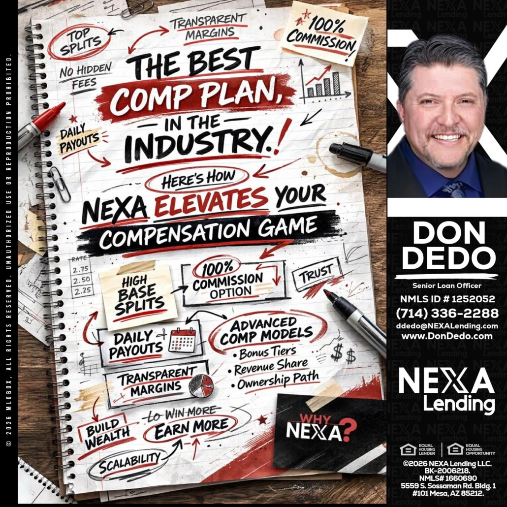 Hi, my name is Don Dedo. I’m a Loan Officer with NEXA Lending LLC., offering personalized mortgage solutions, fast customized quotes, great rates and service with integrity.