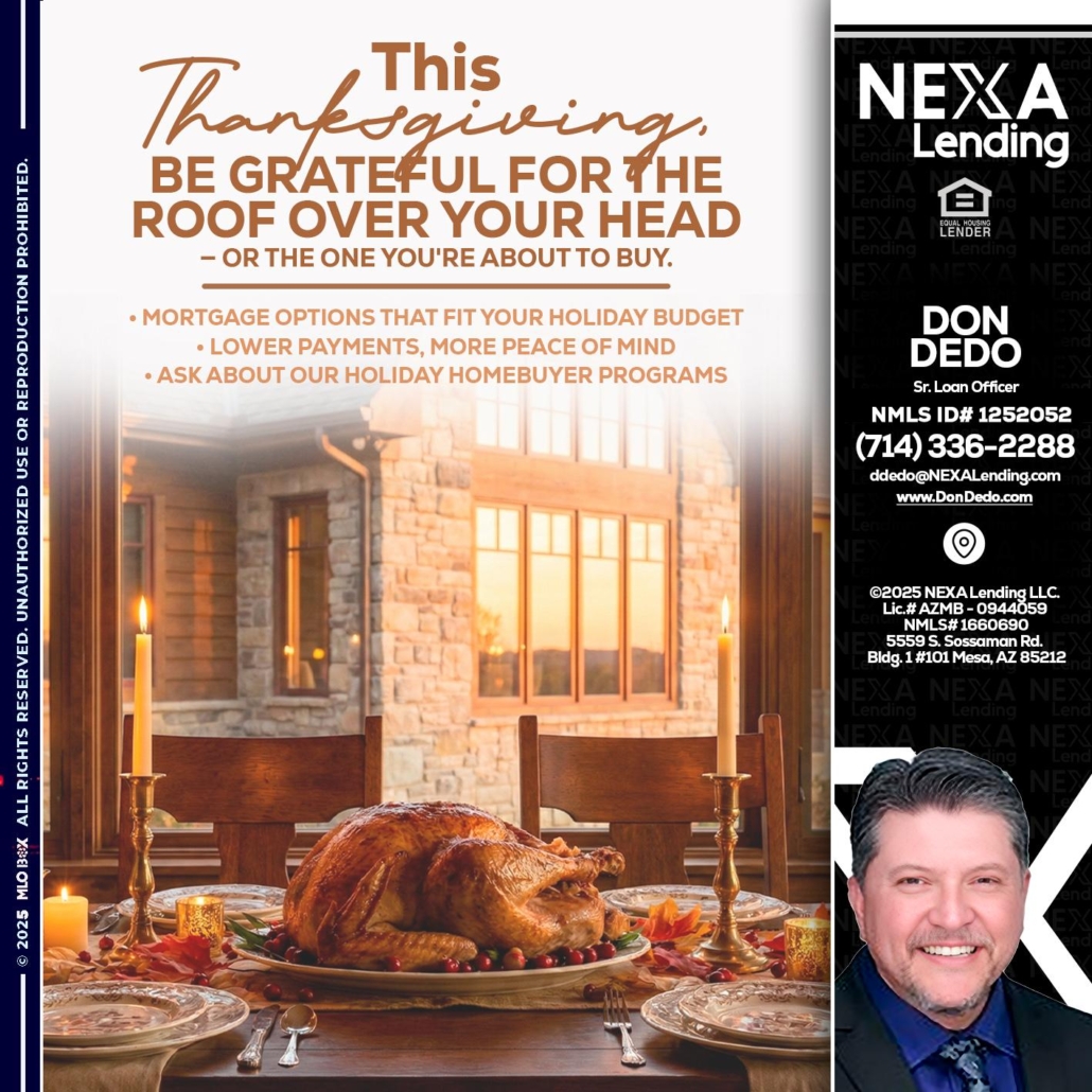 Hi, my name is Don Dedo. I’m a Loan Officer with NEXA Mortgage LLC., offering personalized mortgage solutions, fast customized quotes, great rates and service with integrity.