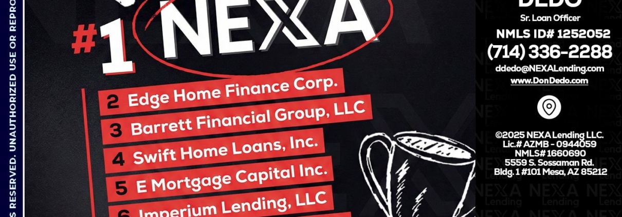 Hi, my name is Don Dedo. I’m a Loan Officer with NEXA Lending LLC., offering personalized mortgage solutions, fast customized quotes, great rates and service with integrity.