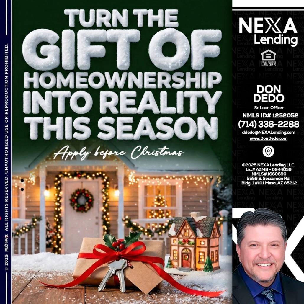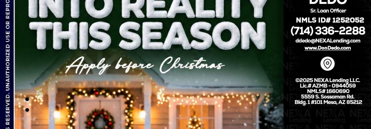 Hi, my name is Don Dedo. I’m a Loan Officer with NEXA Lending LLC., offering personalized mortgage solutions, fast customized quotes, great rates and service with integrity.