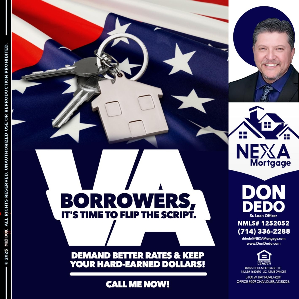 Hi, my name is Don Dedo. I’m a Loan Officer with NEXA Mortgage LLC., offering personalized mortgage solutions, fast customized quotes, great rates and service with integrity.