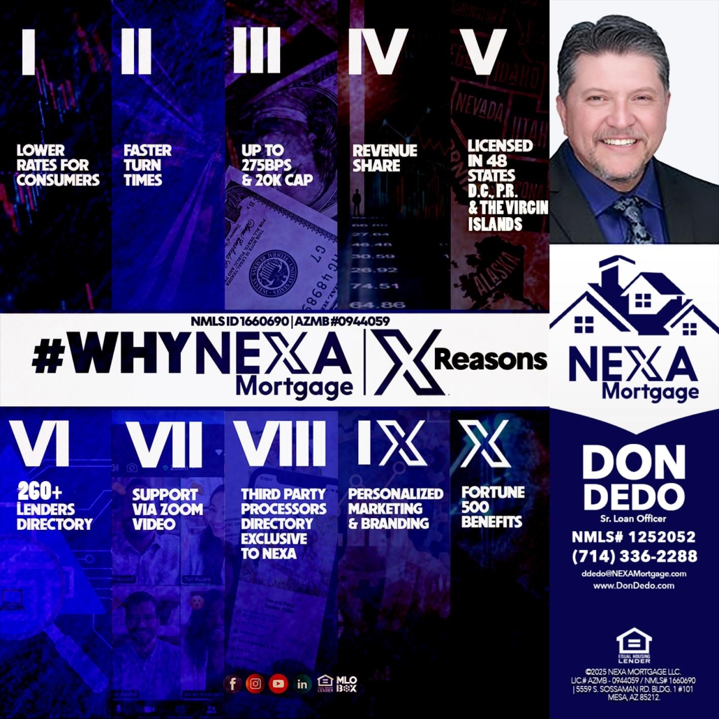 Hi, my name is Don Dedo. I’m a Loan Officer with NEXA Mortgage LLC., offering personalized mortgage solutions, fast customized quotes, great rates and service with integrity.