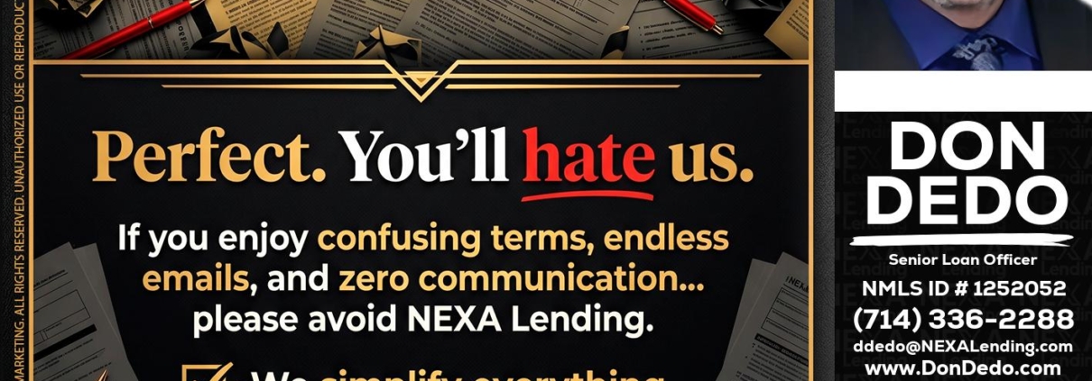 YOU WILL HATE US! - Don Dedo -Mortgage Loan OriginatorHi, my name is Don Dedo. I’m a Loan Officer with NEXA Lending LLC., offering personalized mortgage solutions, fast customized quotes, great rates and service with integrity.